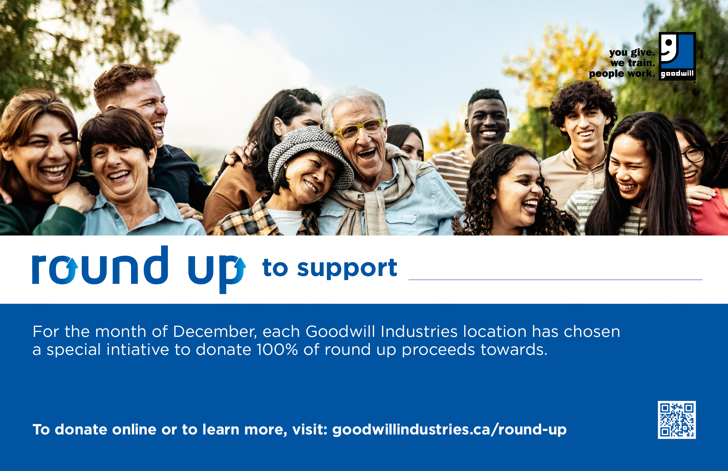 Rounding your purchase to the nearest dollar or ten dollars helps Goodwill fund job readiness programs, create opportunities for employment for individuals facing barriers to employment or support important causes in our community. Goodwill changes where Round Up funds are directed every month, this ensures you can support many causes within Goodwill and our communities by rounding up.