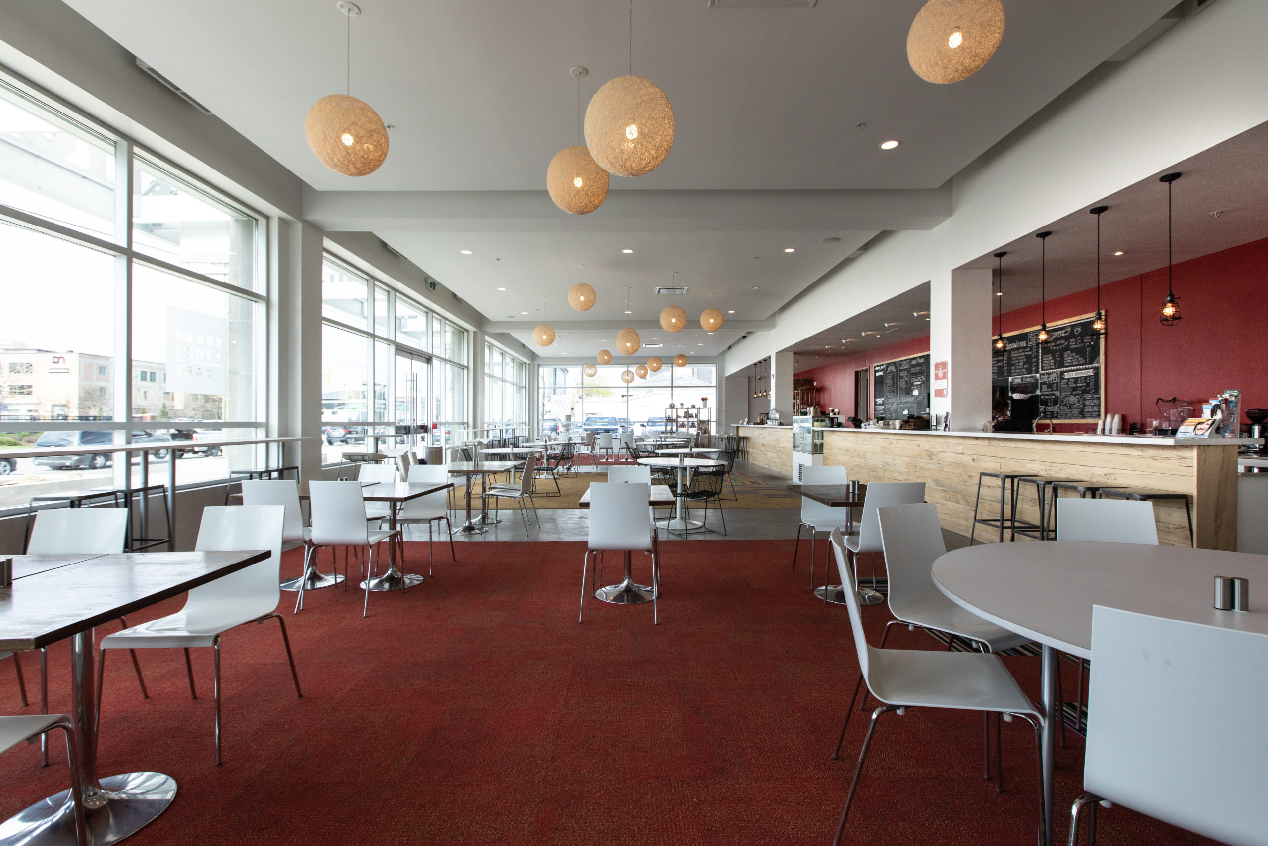 Our Town Hall offers HDMI full AV, a clean, modern feel with amazing natural light and an adjoining patio. Our Community Hall has a more formal feel while still maintaining a modern, clean look with full AV. Our Cafe space and ground floor atrium are also available for events after hours.