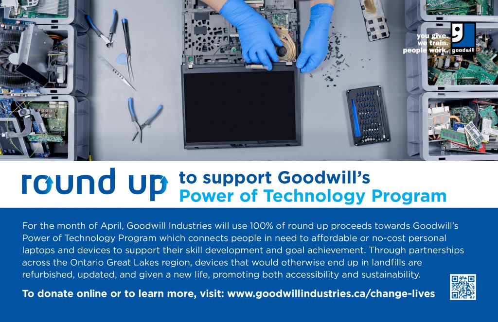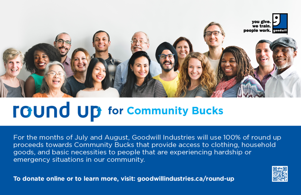 Rounding your purchase to the nearest dollar or ten dollars helps Goodwill fund job readiness programs, create opportunities for employment for individuals facing barriers to employment or support important causes in our community. Goodwill changes where Round Up funds are directed every month, this ensures you can support many causes within Goodwill and our communities by rounding up.