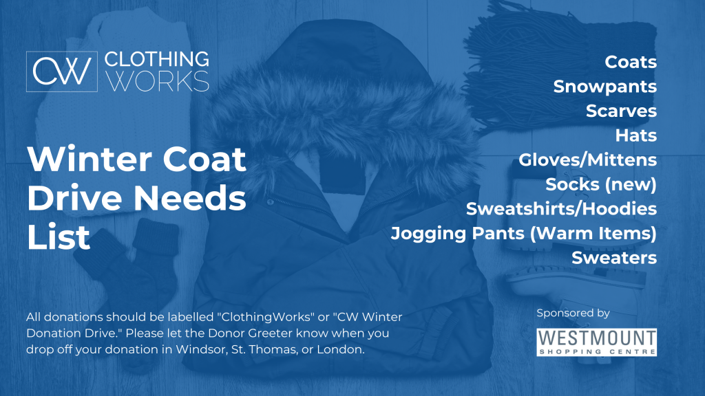ClothingWorks is hosting their annual Winter Coat & Accessories Donation Drive & Giveaway to support our communities. Last year, the ClothingWorks team provided over 5500 winter clothing items to local people in need!