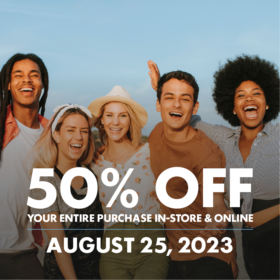 Join us on Friday, December 5, for our 50% Off Everything Sale.