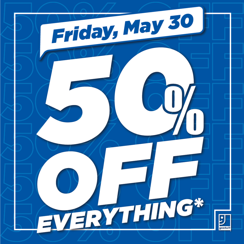 *Discount cannot be combined with any other promotion and is not valid on new goods or for purchasing gift certificates. The Goodwill Outlet (London) is not participating in this sale.