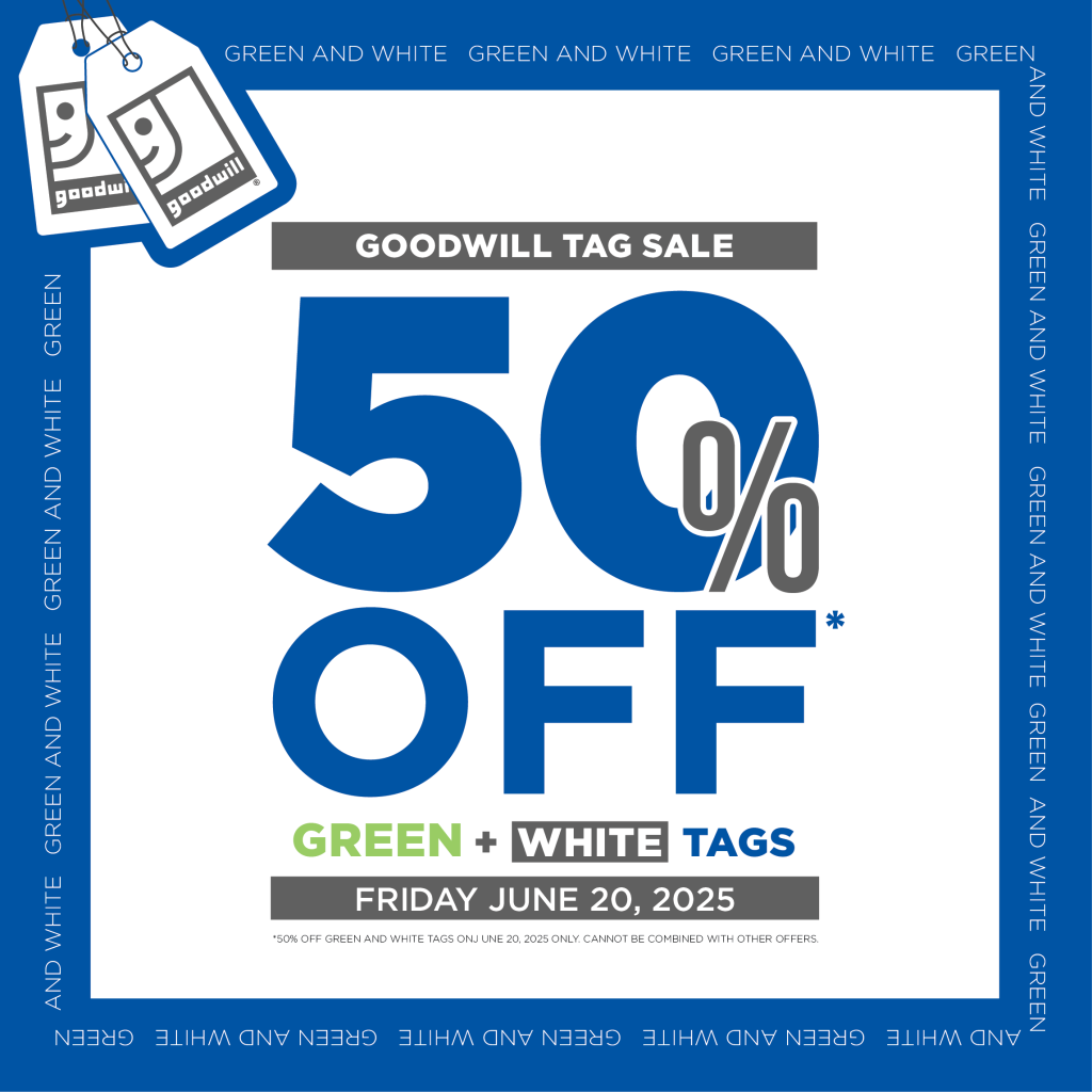 Join us in-store for 30% off green-tagged items and yellow-tagged items on Thursday, December 18, 2025. Sale valid in-store at participating Goodwill Industries, Ontario Great Lakes Community Stores only.