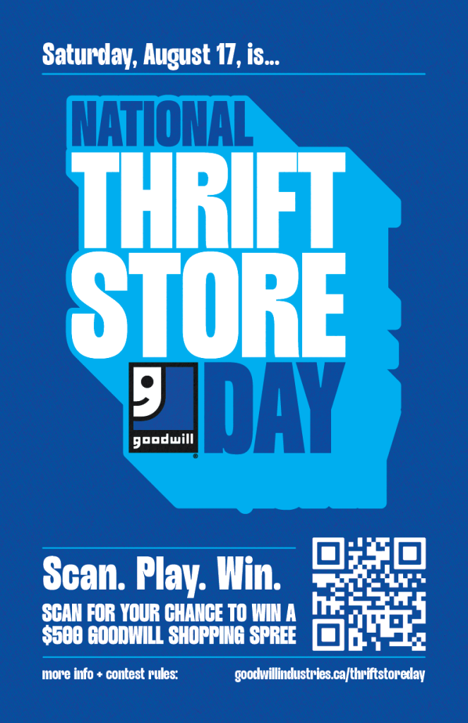 No purchase required. Contest begins on August 16, 2025 at 12:01 a.m. EST and ends on August 17, 2025 at 11:59 p.m. EST. There is a total of thirteen (13) prizes available to be won as follows: three (3) $500 Goodwill gift cards (approximate retail value: five hundred dollars ($500)), ten (10) $100 Goodwill gift cards (approximate retail value: one hundred dollars ($100)). Skill-testing question required. Open to legal residents of Ontario who are age of majority at time of entry. Odds of winning depend on number of eligible entries received before contest closes. Entrant information may be used for marketing purposes. Full rules and entry details available at: www.goodwillindustries.ca/ntsd-giveaway-contest-rules.